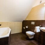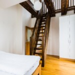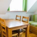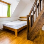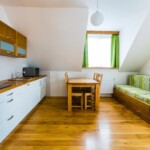 Šestilůžkový apartmán s dispozicí 2 + kk a balkonem orientovaným na východ je umístěn v prvním patře. V pokoji se nachází rozkládací dvoulůžko, kuchyňská linka, šatní skříň, smart TV a jídelní stůl s židlemi. Ložnice je vybavena manželskou postelí, šatní skříní a je z ní přístup do podkroví kde jsou další dvě samostatná lůžka. Apartmán má vlastní koupelnu s vanou a toaletou. Ideální pro větší rodiny s dětmi.